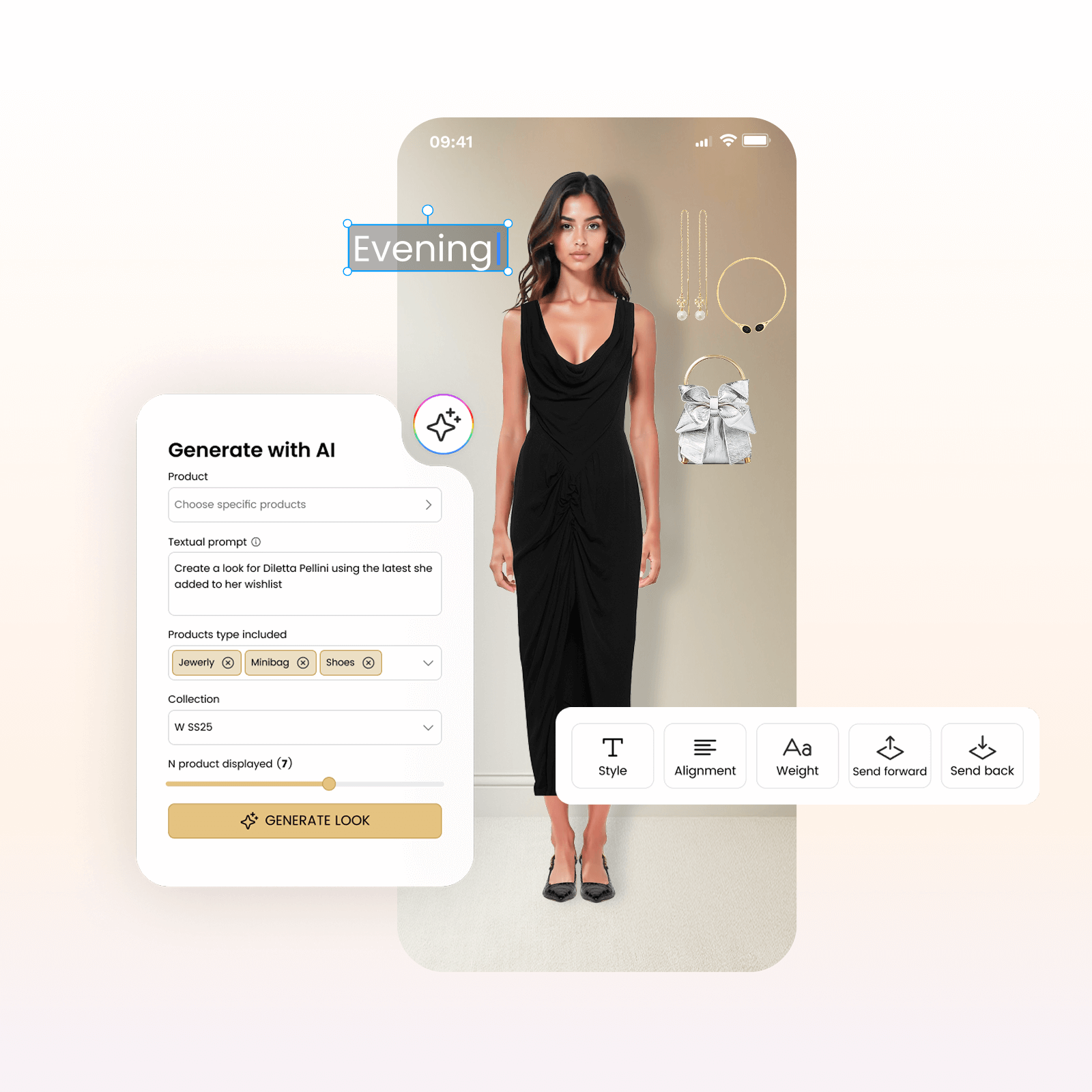 Gli utenti possono importare look ufficiali, modificarli o crearli manualmente. L’AI suggerisce alternative coerenti con lo stile del brand, garantendo equilibrio tra automazione e supervisione umana.